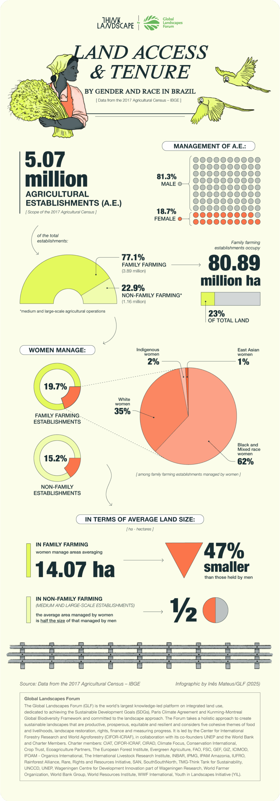 In Brazil, land ownership remains deeply unequal, with men managing over 81% of agricultural establishments—a legacy rooted in colonial history. While women face limited access to land, financing, and rural credit, they are leading powerful grassroots movements like the Marcha das Margaridas, which has secured major victories in joint land ownership and policy reform. Yet, progress is hindered by a lack of gender- and race-disaggregated data, making it difficult to design effective public policies. Advocates call for collective tenure and better data collection to support women in rural areas. But political resistance from powerful landowning interests continues to block systemic reform. Learn more in our full explainer. This infographic is also available in Portuguese.