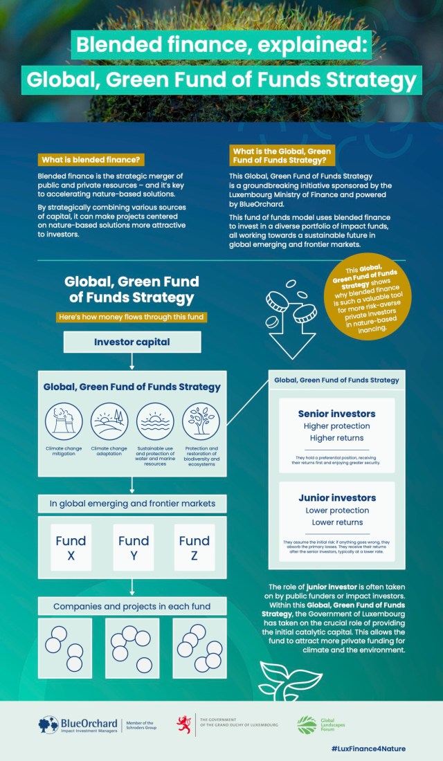 Step into the world of blended finance, where public, private, and philanthropic funds unite to drive nature-based solutions forward. The Global, Green Fund of Funds Strategy, supported by the Luxembourg Ministry of Finance and powered by BlueOrchard, is leading the way.